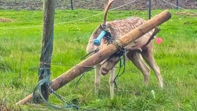 Deer picks up a 6-foot post with his Antlers, only to become helplessly Stuck