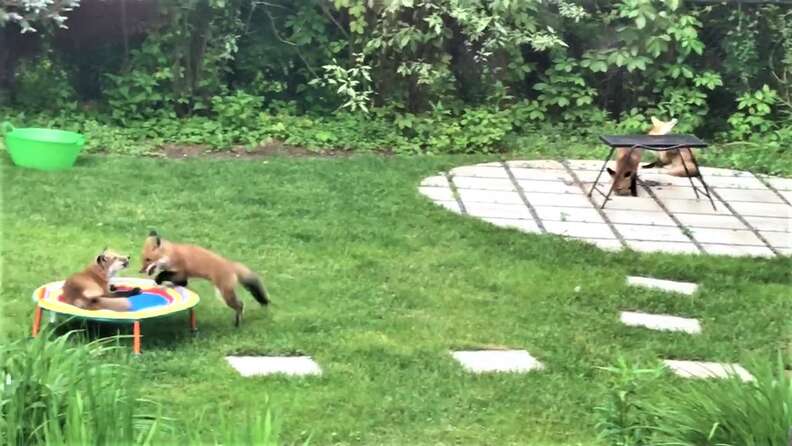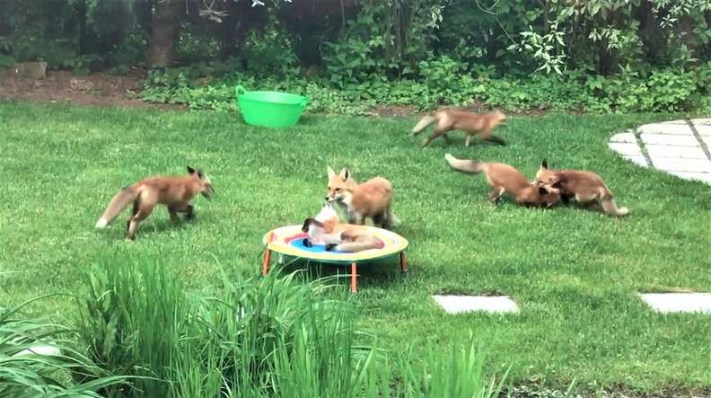 The baby foxes apparently found that first visit entertaining — and they let the rest of their family know it.