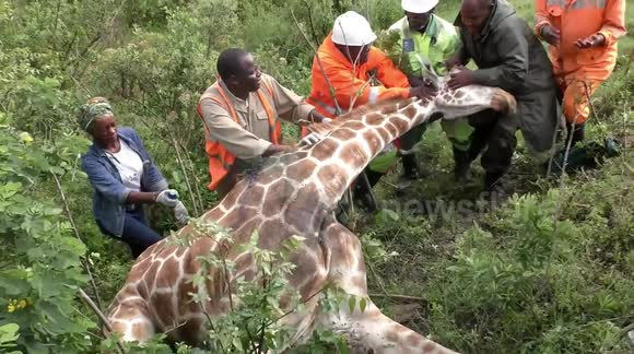 Giraffe is rescued after getting a tire Stuck around its neck in Kenya