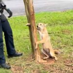 Helpless Dog tied to POLE and left to Die reaches Paw out to Officer for Help