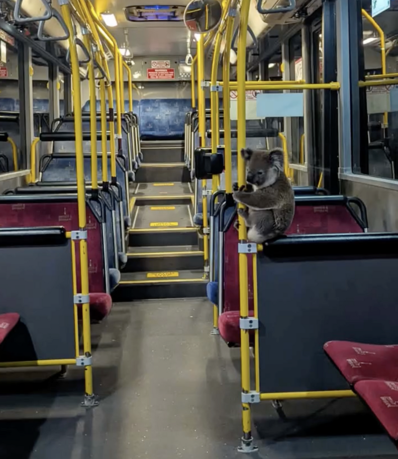 Now out of harm’s way and aboard the bus, the scared koala could finally breathe a little easier.