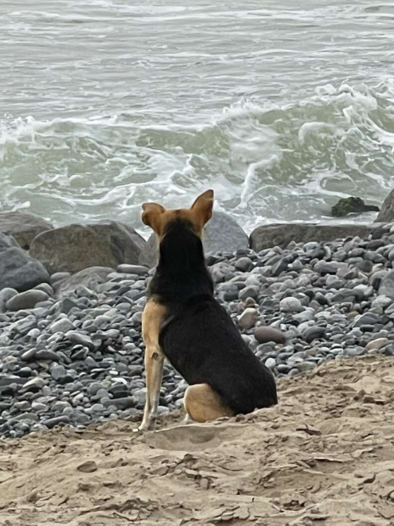 The dog enjoyed Mejía’s pets, but all the while his gaze remained fixed upon the ocean.