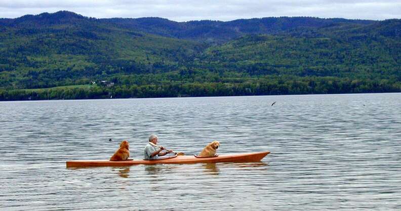 Fortunately for David Bahnson, a retired orthopedic surgeon from Vermont, he’s figured out the perfect way to share his favorite pastime with his pets – by building a kayak designed with them in mind. Now, any adventure out on the water can be complemented by the addition of his happy dogs.