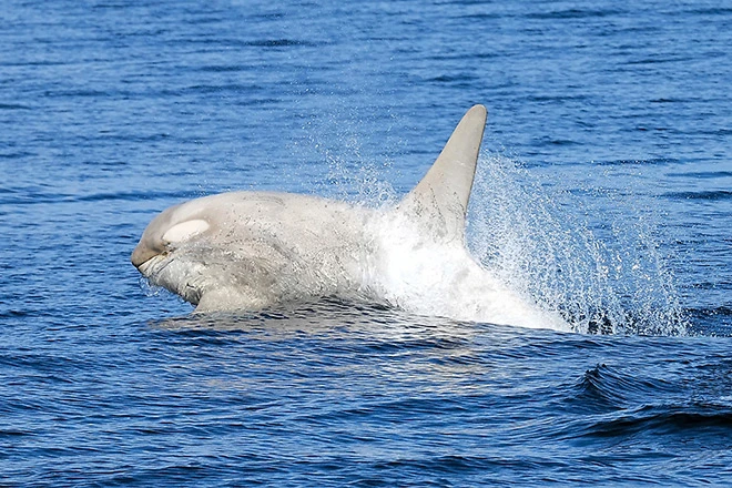 Photographer SHOCK: Rare albino Orca spotted leaping out of water off Japanese coast