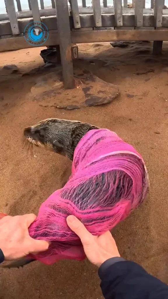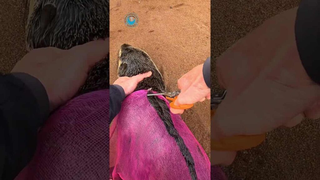 According to a recount of the incident, the seal was found completely wrapped from head to tail in a pink vegetable sack and fine netting — so tight that it struggled to move. Many animals in similar situations never make it ashore or survive to be found.